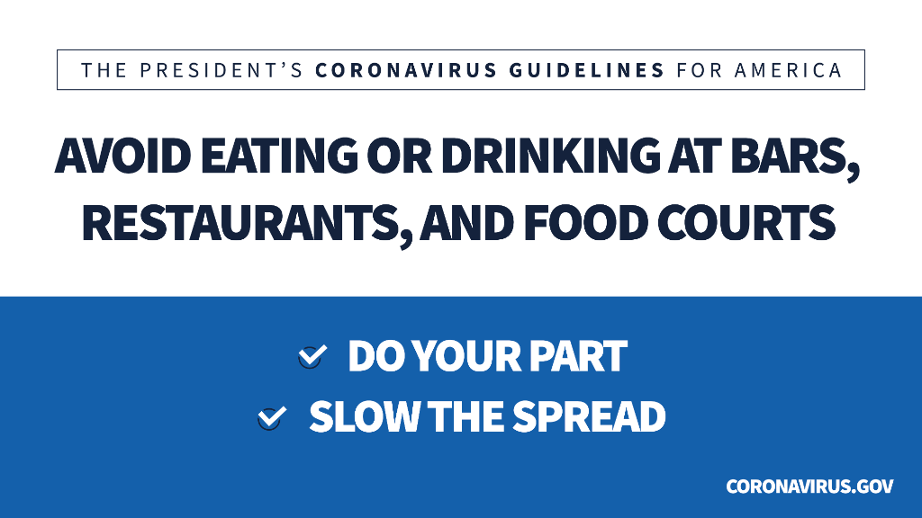 Avoid eating out. Use carry-out, drive-thru, and delivery options. pic.twitter.com/osBRcxnyFY