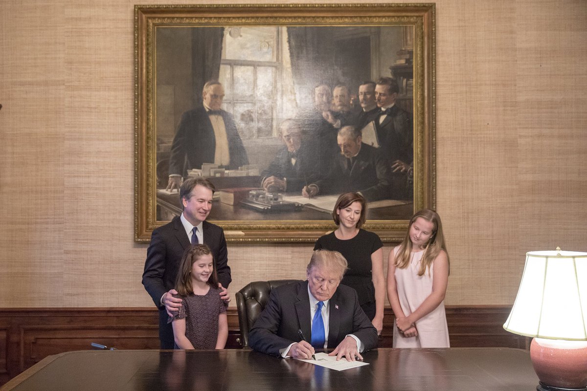 Judge Brett Kavanaugh watches with his family as President Donald J. Trump signs the document Monday evening, July 9, 2018, in the Treaty Room of the @WhiteHouse, naming Kavanaugh as his nominee to become the next Associate Justice of the #SCOTUS. pic.twitter.com/Wv9gvkVFdt